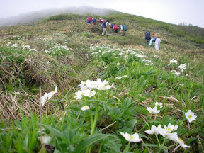綺麗な花に癒されながらの登山。最後は急登りです。
