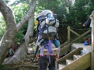 今回は「らくらくプラン」ということでぼっかさんにテント、寝袋、マット、食糧、食器、コンロなど運んでもらいました。おかげで避難小屋泊りのツアーでしたが荷物は軽く体力を温存できました。