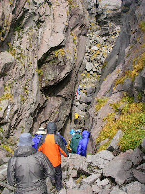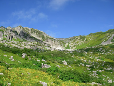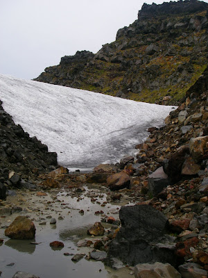 「もう秋になるというのにところどころ雪渓もまーだ残ってます。」